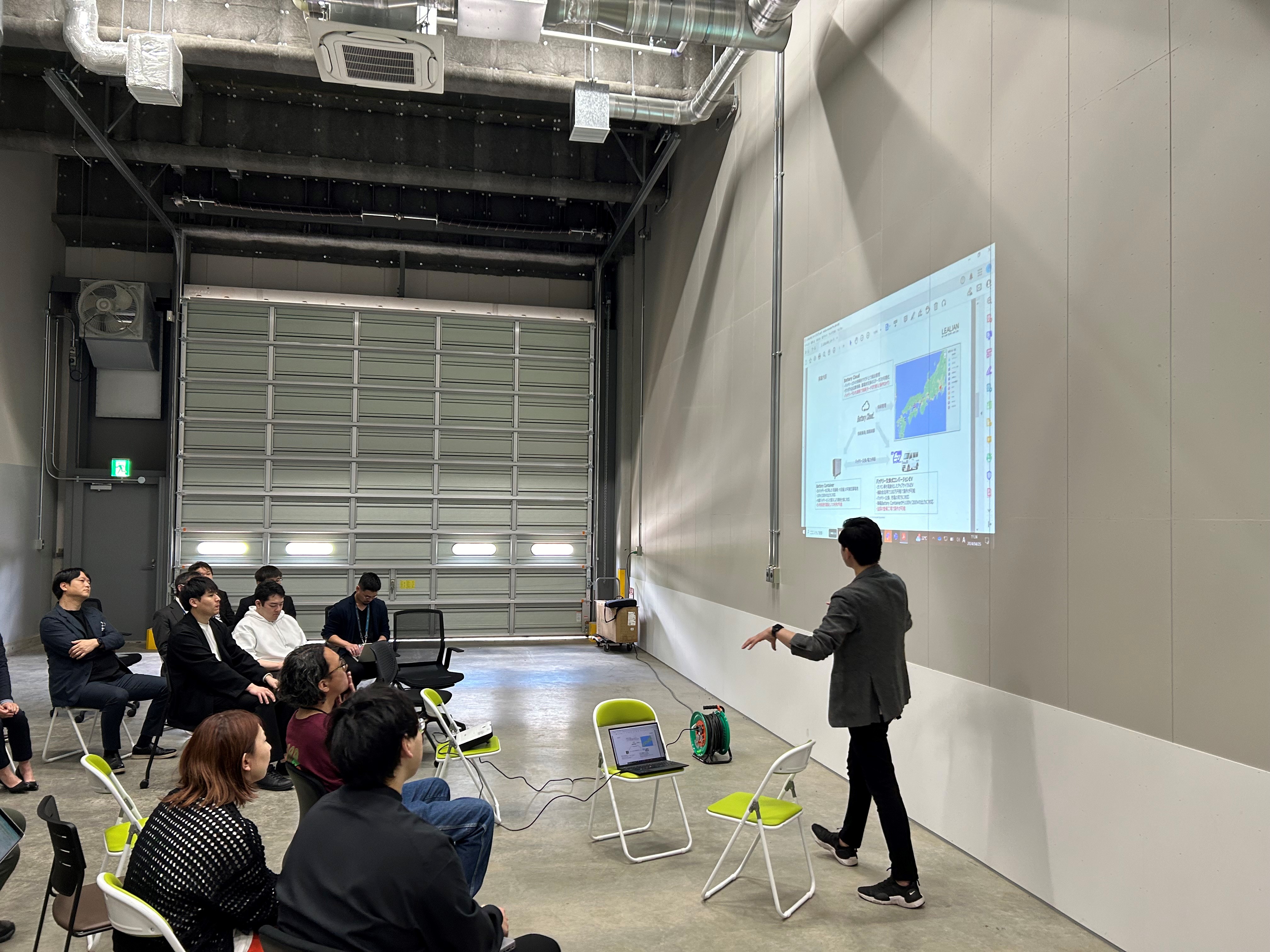 「ZOZOBASEつくば3」内視察時の様子 「入居企業」による自社紹介の様子