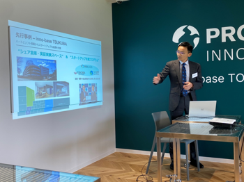 会の中では、2023年に先行して設置したinno-base TSUKUBAにおけるプロロジスの支援事例や、入居企業同士の連携事例、投資が実現した入居企業の紹介など、inno-baseとしての支援実績や、新たに開設したinno-base TOKYO-OSHIAGEの特徴をお伝えしました。